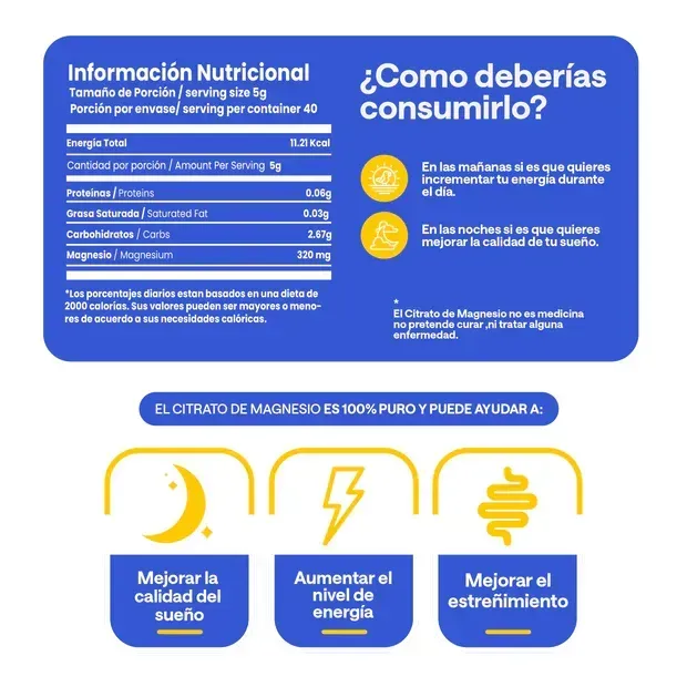 🕓 Se recomienda consumir el producto entre 4 pm y 6 pm ⏰ 🥄 Disolver de 3 gr a 5 gr en agua 💧 o jugos 🥤 a temperatura ambiente 🌡️ 🚫 Evita usar cucharitas de metal ❌. ✅ Opta por cucharitas de madera 🌳, plástico ♻️ o acrílicas ✨