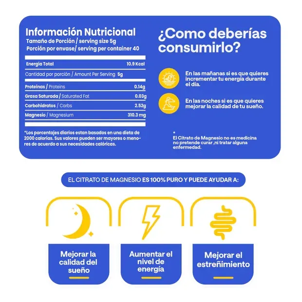 🕓 Se recomienda consumir el producto entre 4 pm y 6 pm ⏰ 🥄 Disolver de 3 gr a 5 gr en agua 💧 o jugos 🥤 a temperatura ambiente 🌡️ 🚫 Evita usar cucharitas de metal ❌. ✅ Opta por cucharitas de madera 🌳, plástico ♻️ o acrílicas ✨