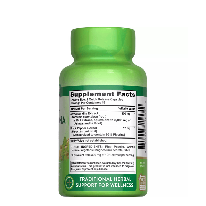 Estas cápsulas presentan ashwagandha derivada directamente de la raíz de Withania somnifera, entregando el equivalente a 920 mg de extracto concentrado de raíz de Ashwagandha en cada porción.**