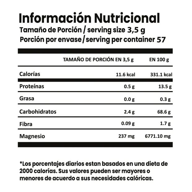 Elaborado con citrato de magnesio 100% puro de origen aleman, maca negra en polvo y taurina. Producto sin azucares añadidas. Libre de gluten. Sin lactosa. Envase de 200 g.